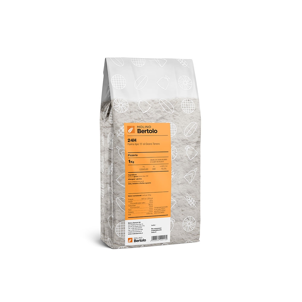 Conforme alla legislazione italiana vigente ed in particolare alla legge 04/07/1967 n. 580 e smi. Farina con aggiunta di glutine.