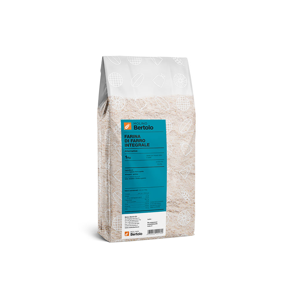 99,9 % Farina di grano farro spelta integrale e 0,1% Acido ascorbico(E300).