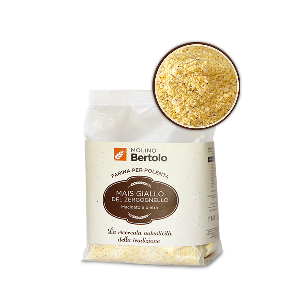 Questa tipologia di polenta, in base alla varietà utilizzata, è ricca di crusca che ne determina anche il caratteristico colore che comprende diversi toni di giallo e marrone, donandole intensi profumi rustici.