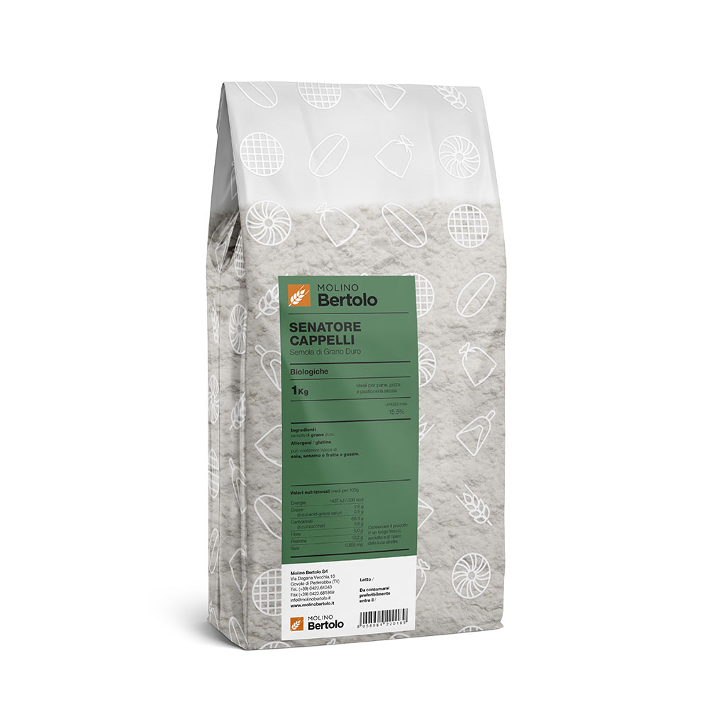 Farina di grano duro ottenuta dalla macinazione e conseguente abburattamento di grani teneri biologici, liberati dalle sostanze estranee e dalle impurità. Conforme alla legislazione italiana vigente ed in particolare alla legge 04/07/1967 n. 580 e smi.